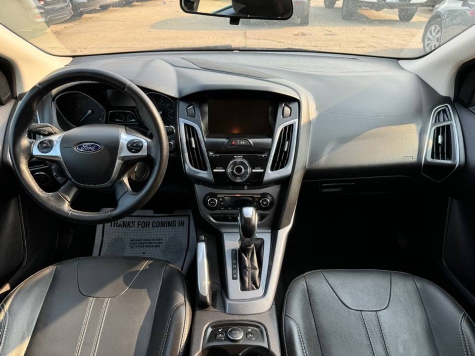 The 2014 Ford Focus Titanium hatchback is a compact car known for its sporty handling and available premium features. It's a top-of-the-line trim, offering features like leather-trimmed seats, a power-adjustable driver's seat, and a Sony audio system. The 2014 Focus Titanium comes standard with a five-speed auto-manual.