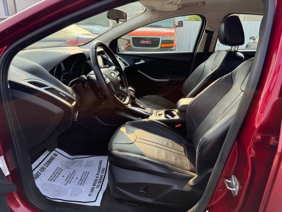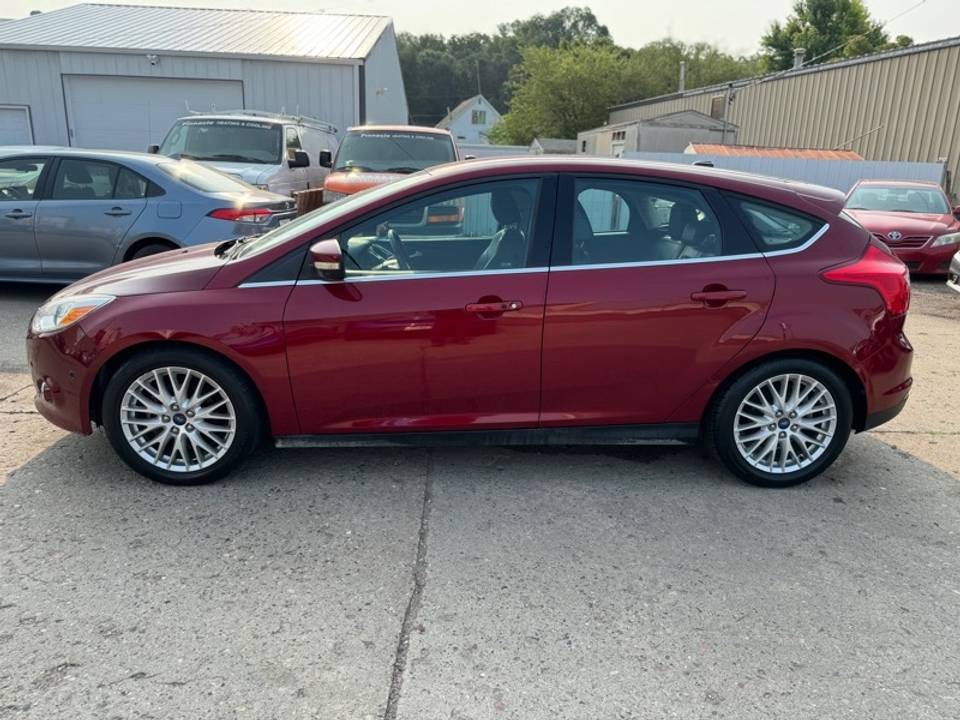 The 2014 Ford Focus Titanium hatchback is a compact car known for its sporty handling and available premium features. It's a top-of-the-line trim, offering features like leather-trimmed seats, a power-adjustable driver's seat, and a Sony audio system. The 2014 Focus Titanium comes standard with a five-speed auto-manual.