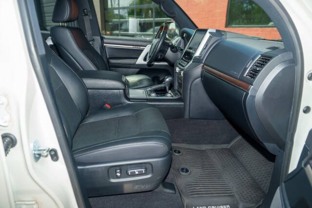 The 2021 Toyota Land Cruiser is a full-size luxury SUV known for its off-road capabilities and spacious interior. Key features include a 5.7L V8 engine, a 9-inch touchscreen, and a standard four-wheel drive system. The vehicle offers a 8,100-pound towing capacity and has a body-on-frame construction for durability. The Land Cruiser boasts a spacious cabin with seating for up to eight passengers, and a large cargo capacity when the rear seats are folded down.
