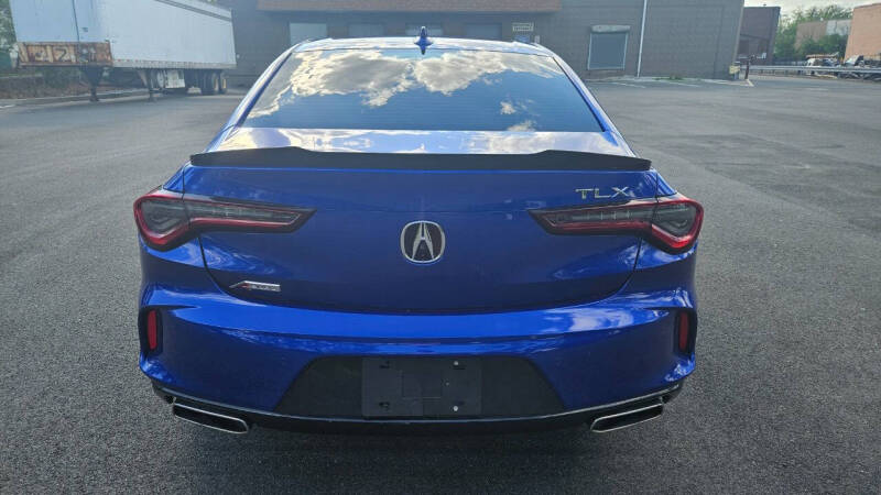 The 2022 Acura TLX with the A-Spec package features a 2.0L turbocharged 4-cylinder engine producing 272 horsepower and 280 lb-ft of torque. It uses a 10-speed automatic transmission with paddle shifters. The A-Spec package enhances the TLX's performance and styling with features like a sportier suspension, exclusive exterior styling, and unique interior details.