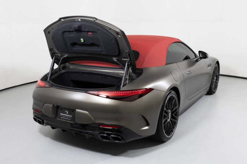 This 2022 AMG SL 55 had an MSRP new of $162,985. Now, this car with less than 1,500 miles and one single owner is available for significantly less than new. The external and internal color combination of this SL 55 really works well together. In addition to all the standard features one would expect from a car this expensive, this SL 55 also has a slew of additional options. A lot of AMG items and the $7,300 Performance Line option.
