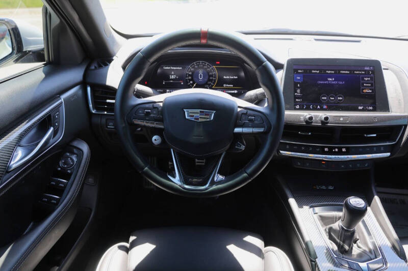 Exhaust - Quad Tip, Exhaust Tip Color - Black, Rear Spoiler - Decklid, Door Handle Color - Body-Color, Front Bumper Color - Body-Color, Grille Color - Black, Mirror Color - Body-Color, Rear Bumper Color - Body-Color, Rear Spoiler Color - Body-Color, Rocker Panel Color - Black, Window Trim - Black, Air Filtration, Armrests - Rear Center With Cupholders, Armrests - Rear Folding, Door Sill Trim - Illuminated Scuff Plate, Floor Mat Material - Carpet, Floor Material - Carpet, Floor Mats - Front, Floor Mats - Rear, Foot Pedal Trim - Alloy, Front Air Conditioning - Automatic Climate Control, Front Air Conditioning Zones - Dual, Heated Steering Wheel, Humidity/Dewpoint Sensors, Interior Accents - Carbon Fiber, Rear Vents - Second Row, Steering Wheel Trim - Carbon Fiber, Steering Wheel Trim - Leather, Ambient Lighting, Assist Handle - Front, Assist Handle - Rear, Capless Fuel Filler System, Center Console - Front Console With Armrest And Storage, Courtesy Lights - Door, Cruise Control, Cupholders - Front, Cupholders - Rear, Easy Entry - Power Driver Seat, Footwell Lights, Memorized Settings - 2 Driver, Memorized Settings - Driver Seat, Memorized Settings - Side Mirrors, Memorized Settings - Steering Wheel, Multi-Function Remote - Panic Alarm, Multi-Function Remote - Proximity Entry System, Multi-Function Remote - Trunk Release, One-Touch Windows - 4, Overhead Console - Front, Power Outlet(S) - 12v Front, Power Outlet(S) - 12v Rear, Power Outlet(S) - Usb Front, Power Outlet(S) - Usb-C Front, Power Outlet(S) - Usb-C Rear, Power Steering - Variable/Speed-Proportional, Power Windows - Lockout Button, Push-Button Start, Reading Lights - Front, Reading Lights - Rear, Rearview Mirror - Auto-Dimming, Steering Wheel - Power Tilt And Telescopic, Steering Wheel Mounted Controls - Audio, Steering Wheel Mounted Controls - Cruise Control, Steering Wheel Mounted Controls - Multi-Function, Steering Wheel Mounted Controls - Phone, Steering Wheel Mounted Controls - Voice Control, Storage - Door Pockets, Storage - Front Seatback, Universal Remote Transmitter - Homelink - Garage Door Opener, Vanity Mirrors - Dual Illuminating, Wireless Charging Station - Front, Front Brake Type - Ventilated Disc, Front Shock Type - Monotube, Front Spring Type - Coil, Front Struts - Macpherson, Front Suspension Type - Double Ball Joint, Hill Holder Control, Painted Brake Calipers, Rear Brake Type - Ventilated Disc, Rear Shock Type - Monotube, Rear Spring Type - Coil, Tuned Suspension - Sport, Abs - 4-Wheel, Active Suspension, Axle Ratio - 3.73, Braking Assist, Drive Mode Selector, Driver Adjustable Suspension - Ride Control, Electronic Brakeforce Distribution, Electronic Parking Brake - Auto Off, Front Brake Diameter - 15.7, Front Brake Width - 1.42, Front Stabilizer Bar, Front Suspension Classification - Independent, Limited Slip Differential - Rear, Power Brakes, Premium Brakes - Brembo, Rear Brake Diameter - 14.7, Rear Brake Width - 1.1, Rear Stabilizer Bar, Rear Suspension Classification - Independent, Rear Suspension Type - Multi-Link, Stability Control, Suspension Control - Magnetic, Traction Control, Battery - Maintenance-Free, Battery Saver, Cylinder Deactivation, Connected In-Car Apps - App Marketplace Integration, Connected In-Car Apps - Google Pois, Connected In-Car Apps - Google Search, Customizable Instrument Cluster, Driver Assistance App - Roadside Assistance, Electronic Messaging Assistance - Voice Operated, Gauge - Tachometer, Hands-Free Phone Call Integration - Voice Operated, Infotainment - Cadillac Infotainment System, Infotainment Screen Size - 10 In., Instrument Cluster Screen Size - 12 In., Navigation Data - Real Time Traffic, Navigation System - Voice Operated, Premium Brand - Akg, Radio - Voice Operated, Satellite Communications - Voice Guided Directions, Smart Device App Compatibility - Mycadillac With Connected Access, Smart Device App Function - Horn/Light Operation, Smart Device App Function - Lock Operation, Smart Device App Function - Mainten