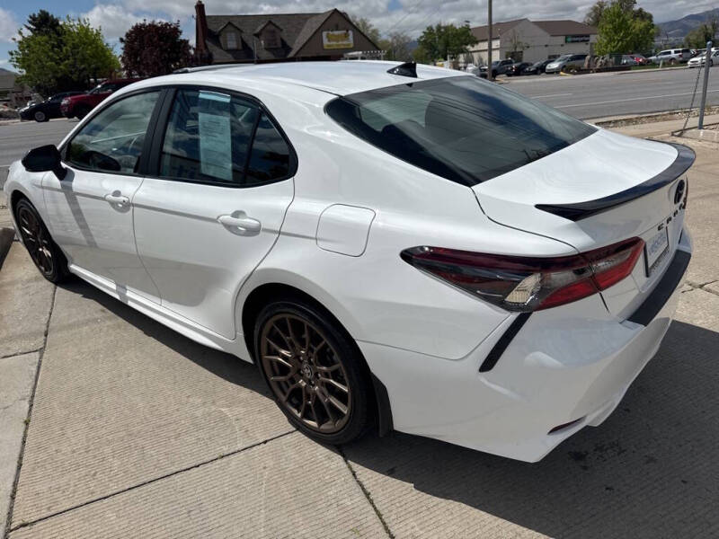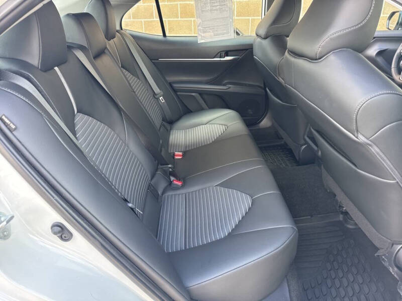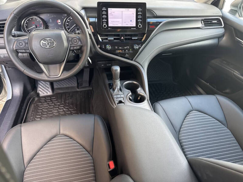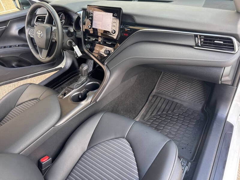 The 2023 Toyota Camry SE Nightshade Edition features a 2.5-liter 4-cylinder engine with 203 horsepower and 184 lb-ft of torque. It's available with either front-wheel drive or all-wheel drive and comes with an 8-speed automatic transmission. The Nightshade Edition adds blacked-out exterior accents and a sportier look to the SE model.